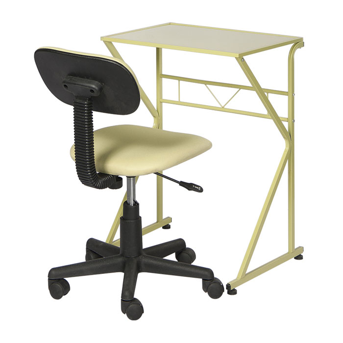 "桌子:钢化玻璃+碳钢 转椅:荔纹布+聚丙烯" |